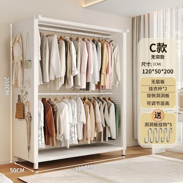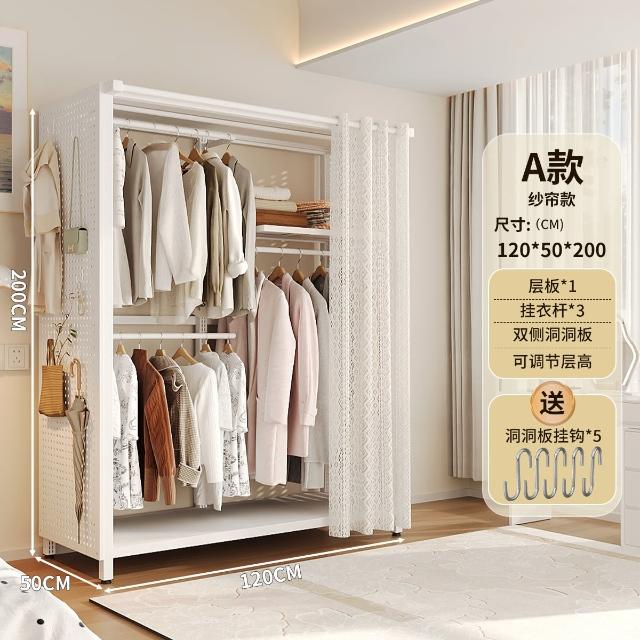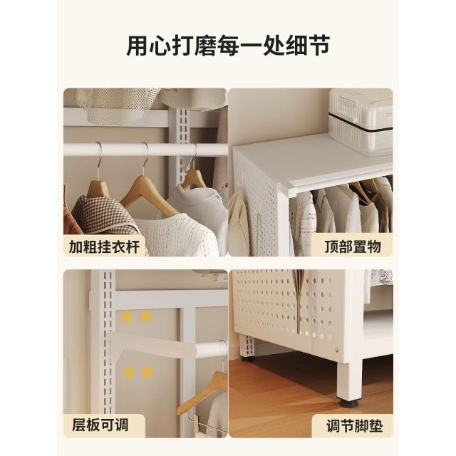 衣櫃簡易組裝全掛式洞洞板臥室家用鋼制金屬衣櫃出租房衣服收納櫃
