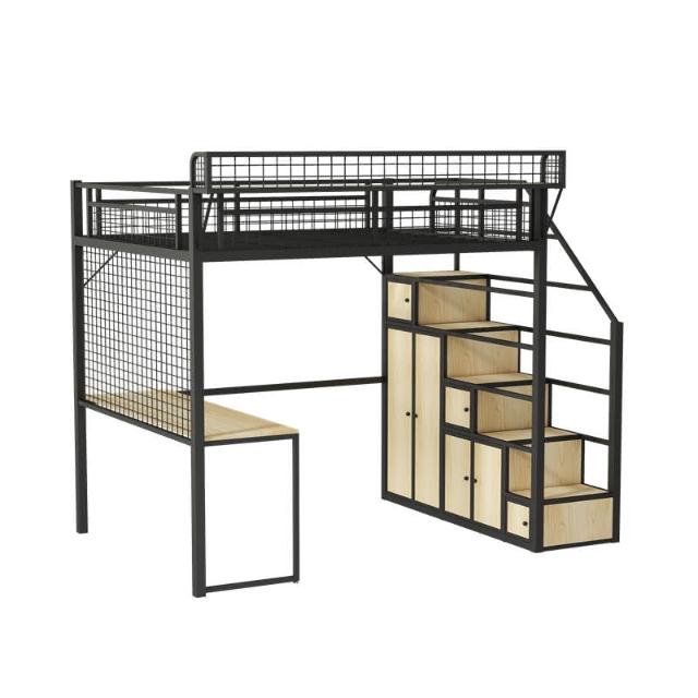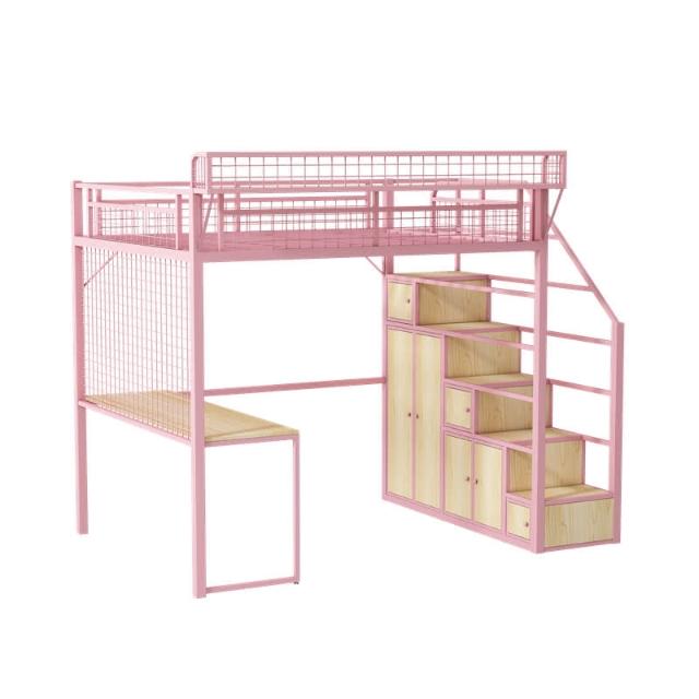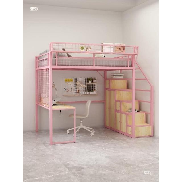 上床下桌組合床多功能鐵藝高架床小戶省空間雙人二樓床寫字桌學生