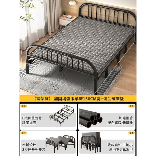 折叠床单人床1米5家用简易成人床出租房1米2宿舍铁床行军双人铁床