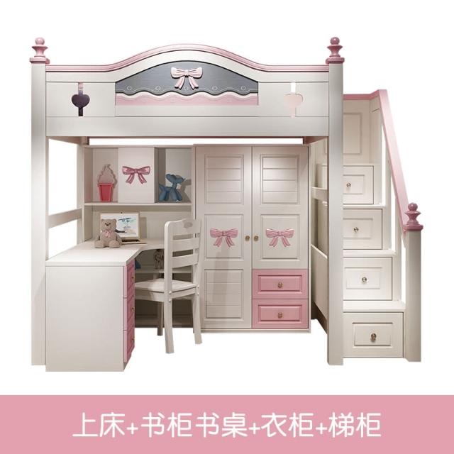 上床下桌上下鋪木床兒童女孩公主床帶書桌衣櫃一體多功能組合床