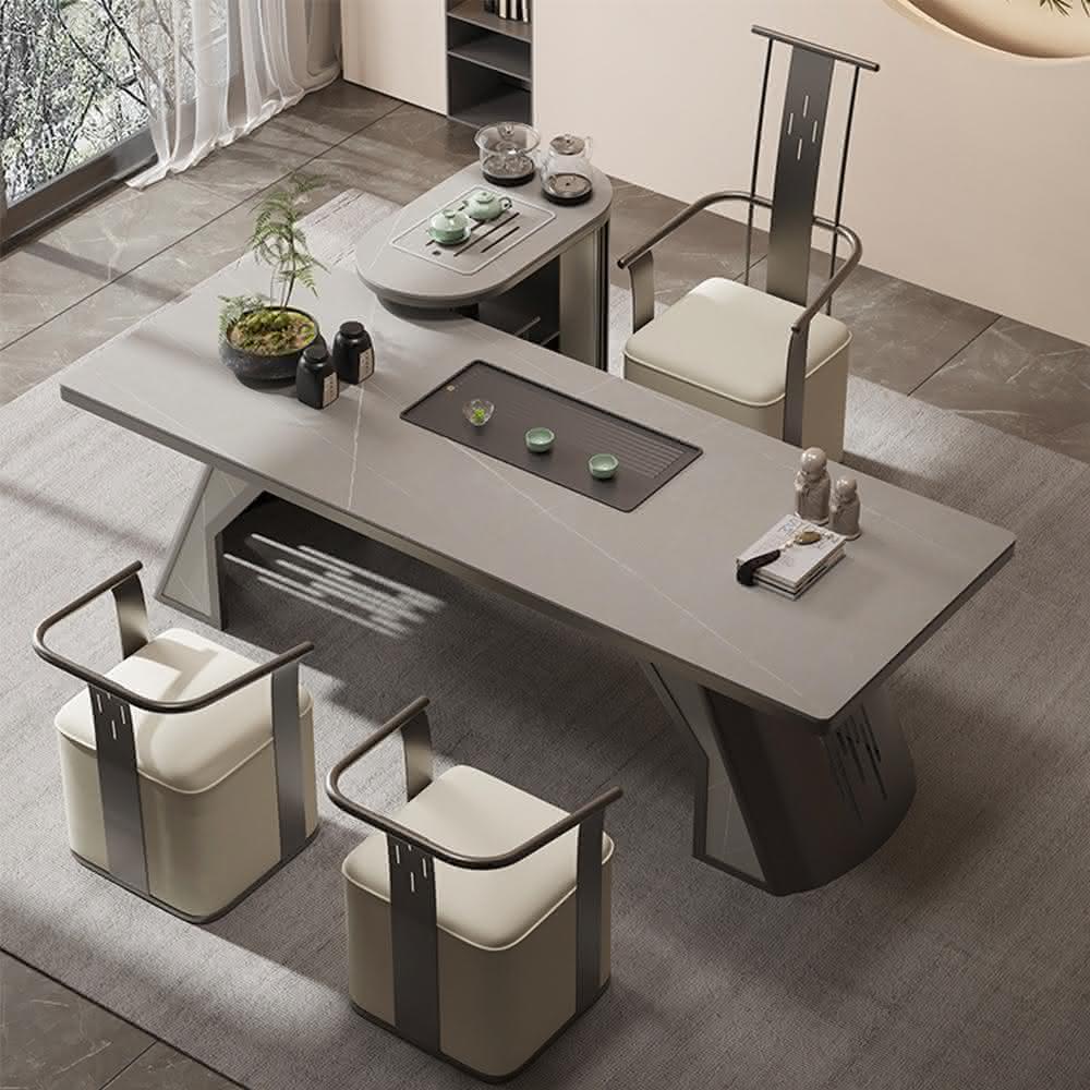 輕奢岩板泡茶桌椅組合現代簡約全自動上水燒水辦公室高端功夫茶臺