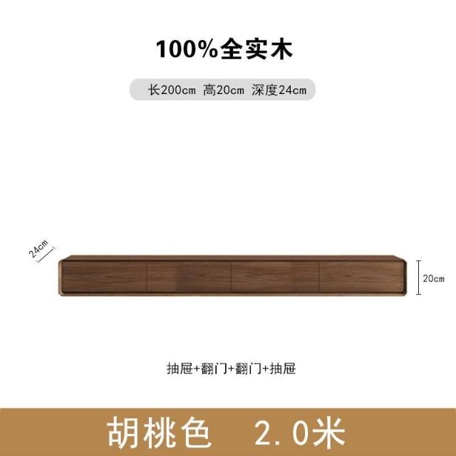 實木壁掛電視櫃懸空臥室客廳懸掛胡桃木色懸浮窄款全實木電視櫃