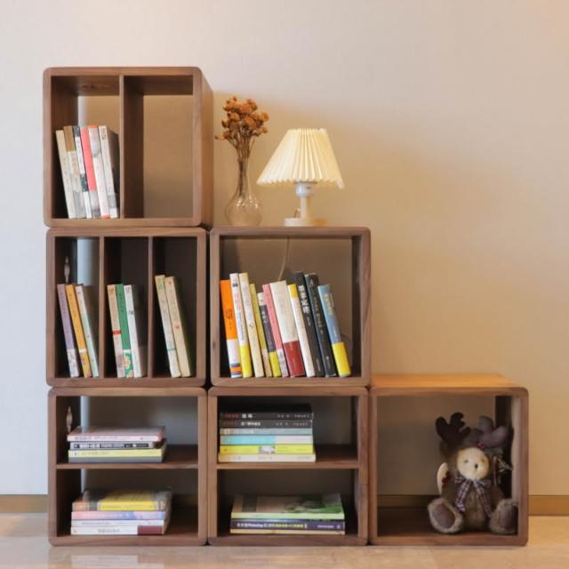 新款黑胡桃木格子櫃自由組合書櫃實木方格矮櫃床頭置物架模組櫃飄