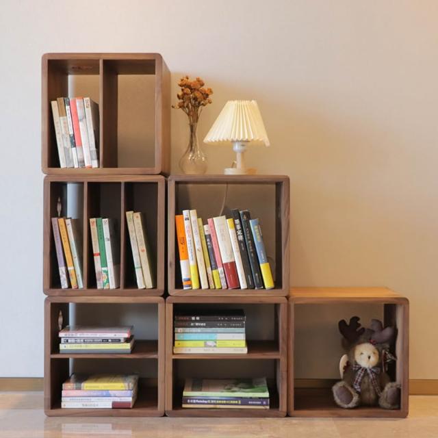 新款黑胡桃木格子櫃自由組合書櫃實木方格矮櫃床頭置物架模組櫃飄