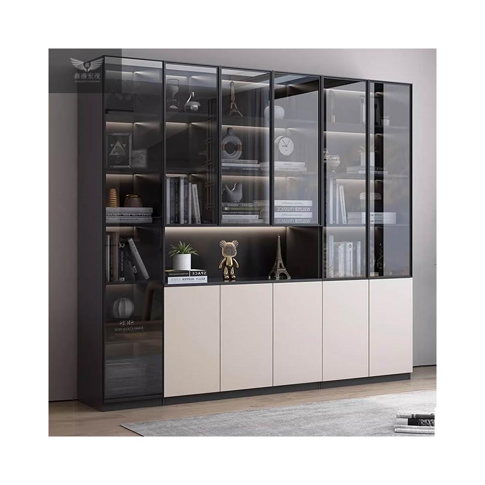 家用客廳儲物櫃輕奢實木書櫃玻璃門組合展示櫃一體整牆防塵收納櫃