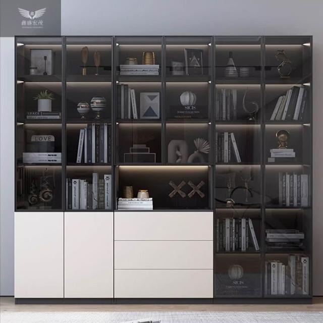 家用客廳儲物櫃輕奢實木書櫃玻璃門組合展示櫃一體整牆防塵收納櫃