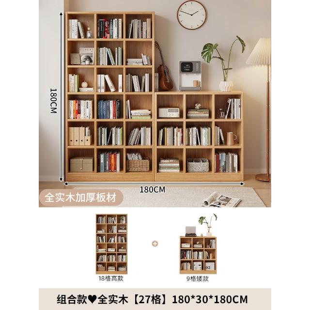 全實木一面牆書櫃去客廳化滿牆高低書架一體靠牆收納展示儲物櫃子