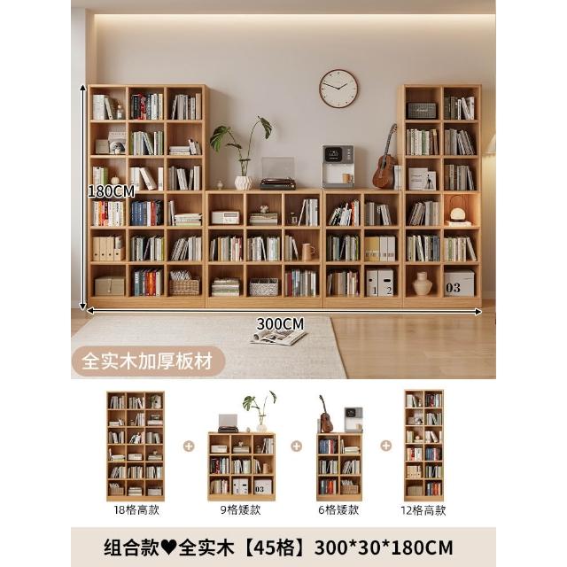 全實木一面牆書櫃去客廳化滿牆高低書架一體靠牆收納展示儲物櫃子