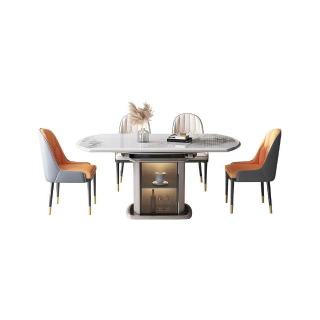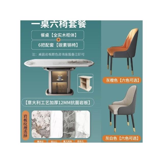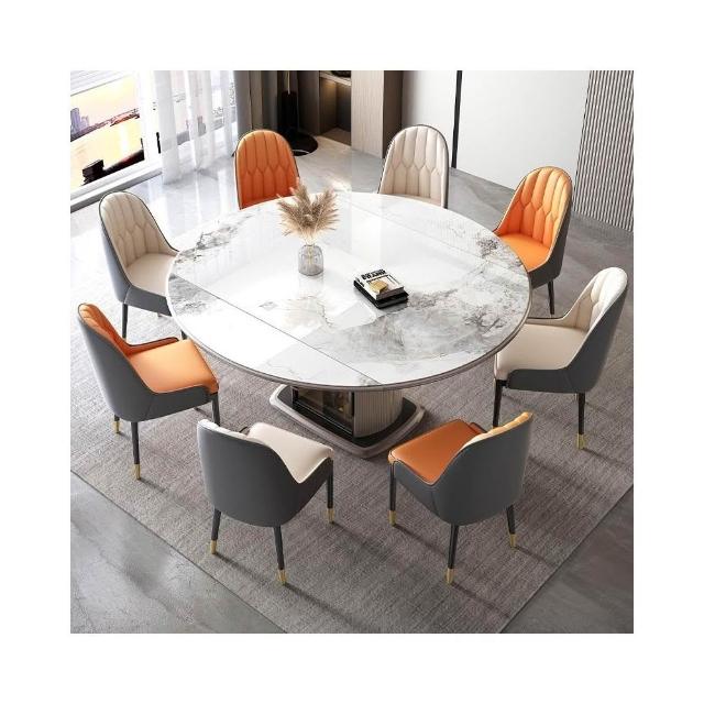 輕奢岩板餐桌 方可變圓家用飯桌 可伸縮小戶型實木儲物餐桌