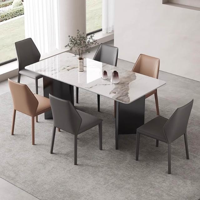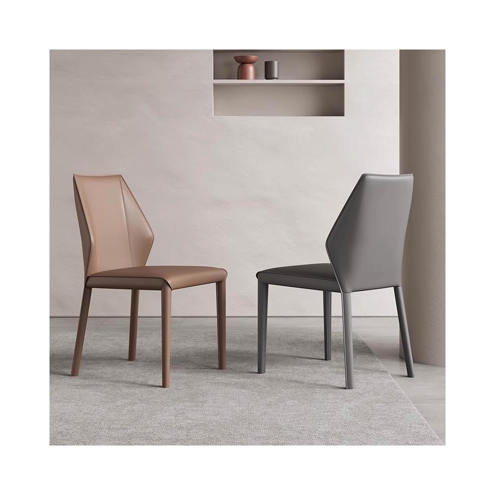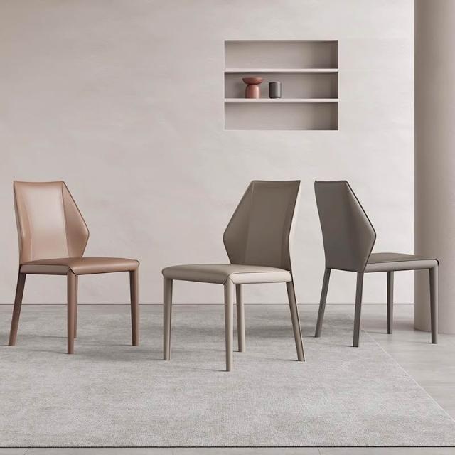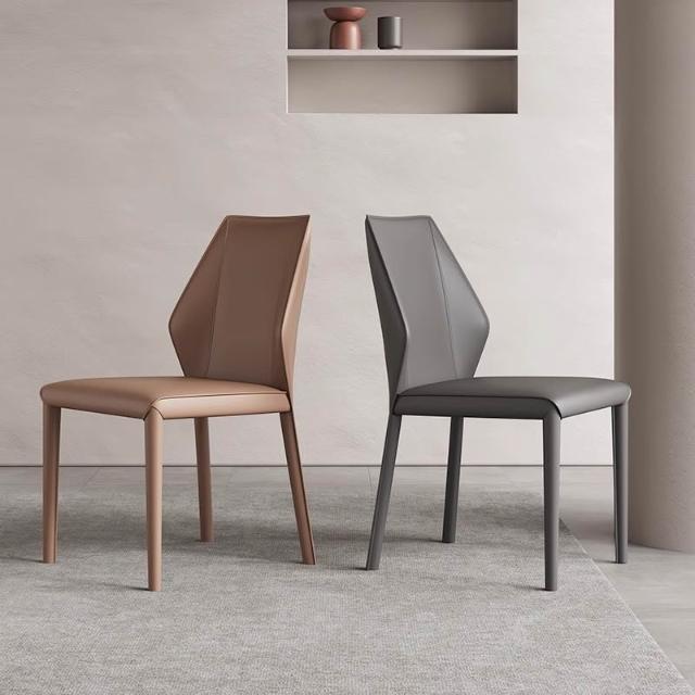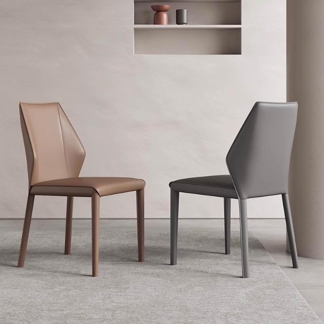 意式極簡餐椅家用馬鞍皮餐桌椅子高級感吃飯靠背凳子酒店餐廳皮椅