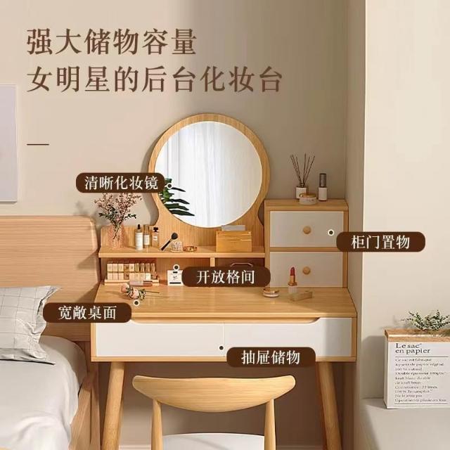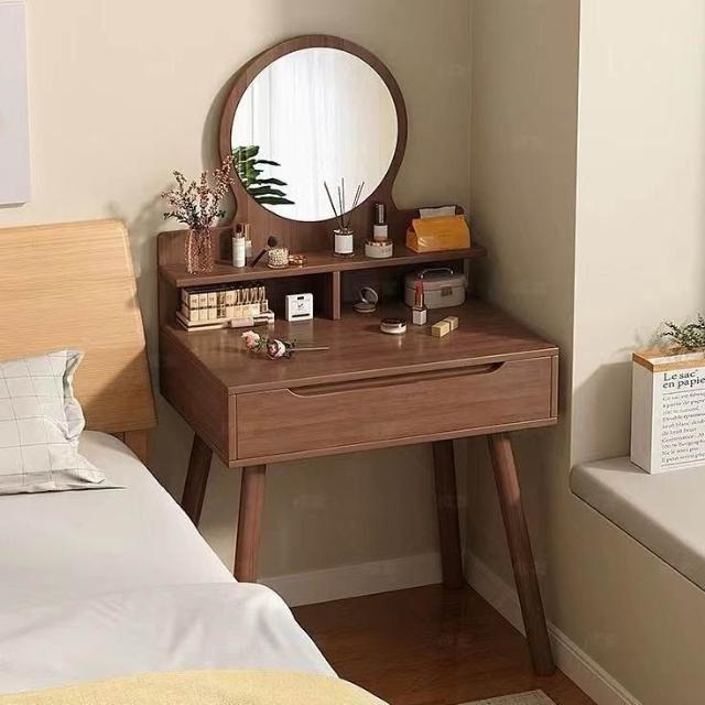 原木風梳粧檯小戶型簡約化妝臺臥室一體化妝桌高級帶抽迷你化妝桌