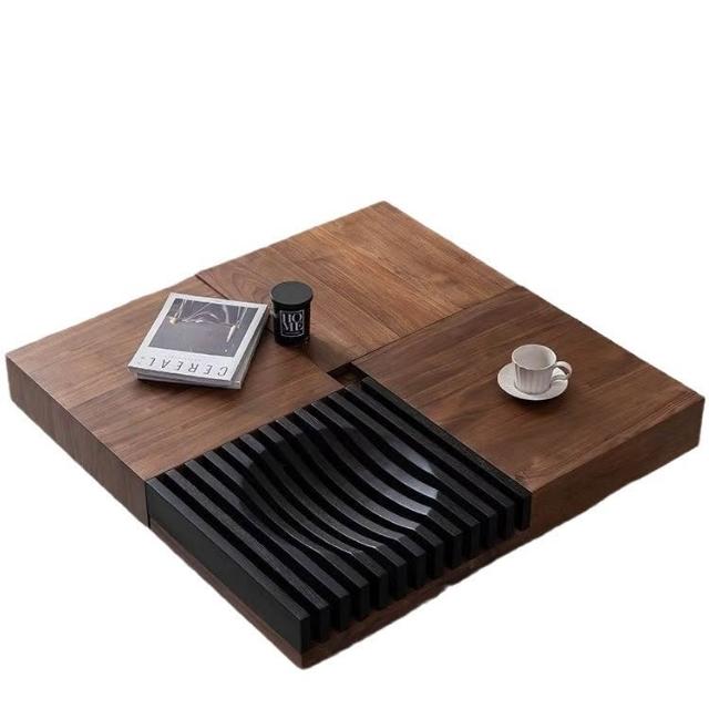 北歐網紅侘寂風茶几小戶型客廳黑胡桃木色帶抽屜儲物正方形茶臺桌