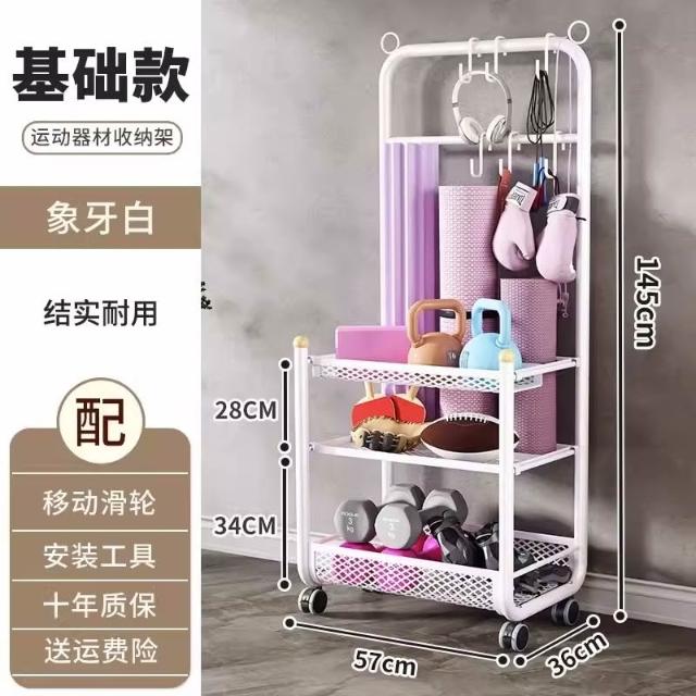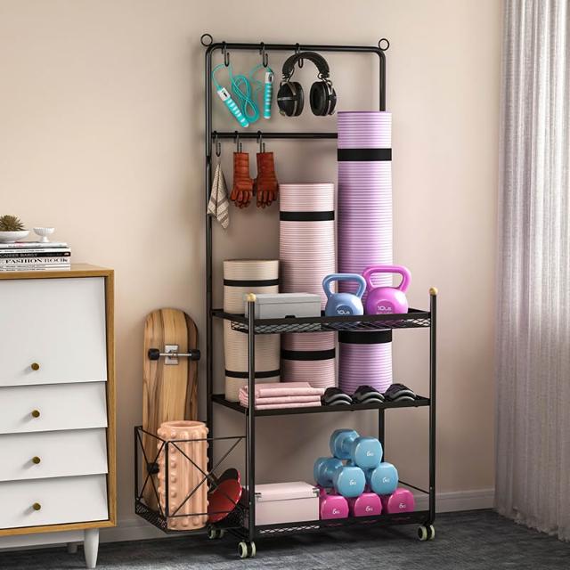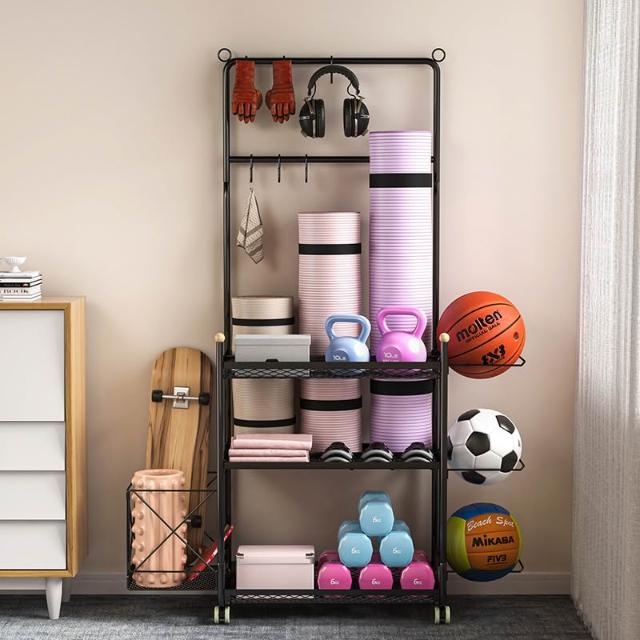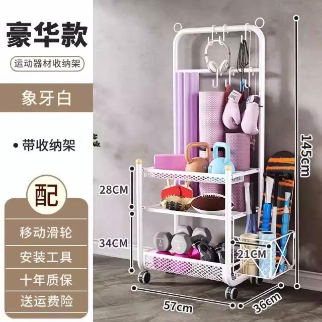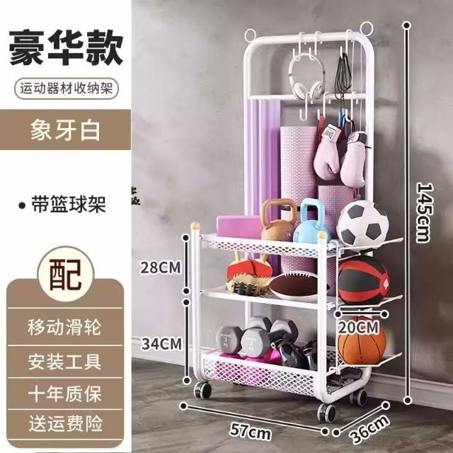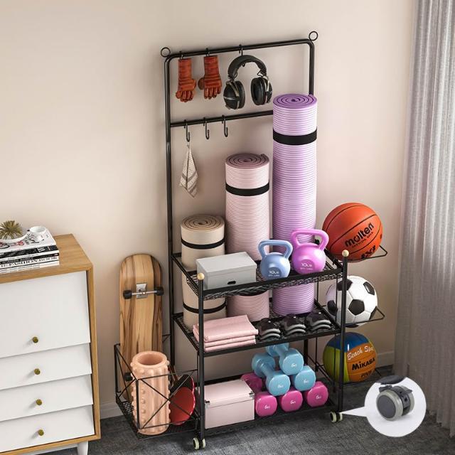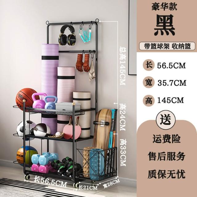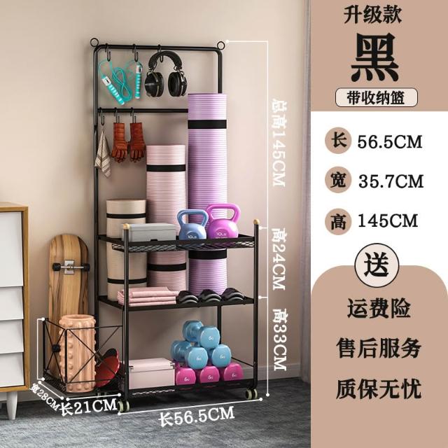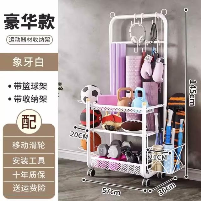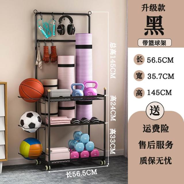 運動器材收納筐瑜伽墊健身整理置物架瑜伽球平衡球收納架子帶滾輪