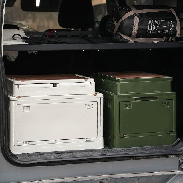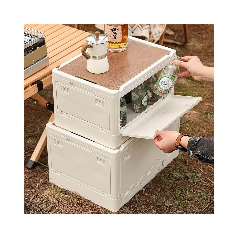户外露营收纳箱侧开门野营木盖折叠箱收纳盒家用车载后备箱储物箱