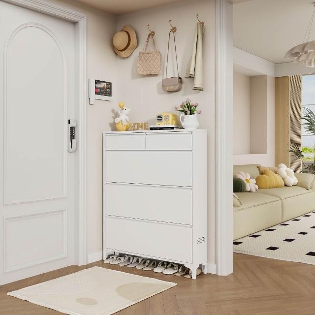 免運 鋼制超薄鞋櫃家用門口入戶翻鬥式玄關櫃可上牆收納神器省空間鞋架