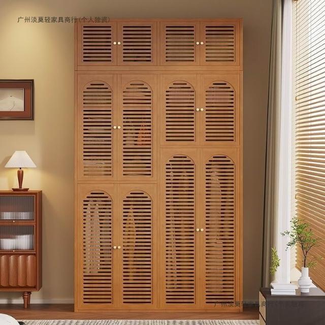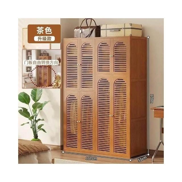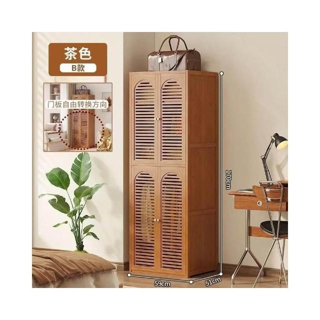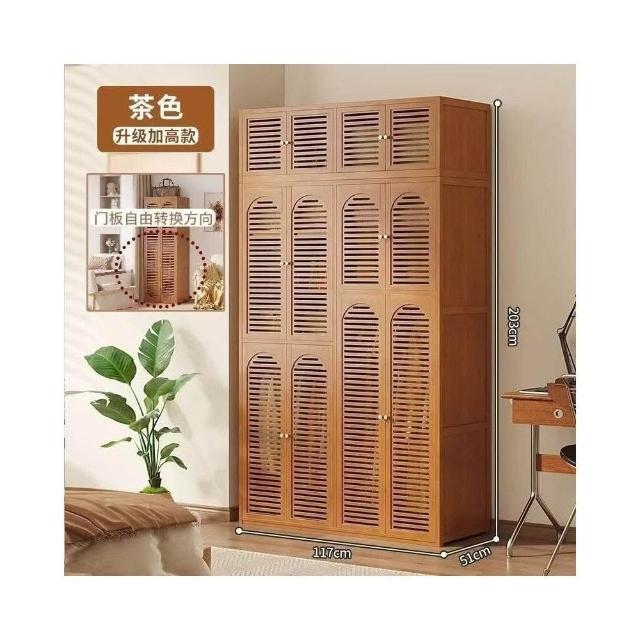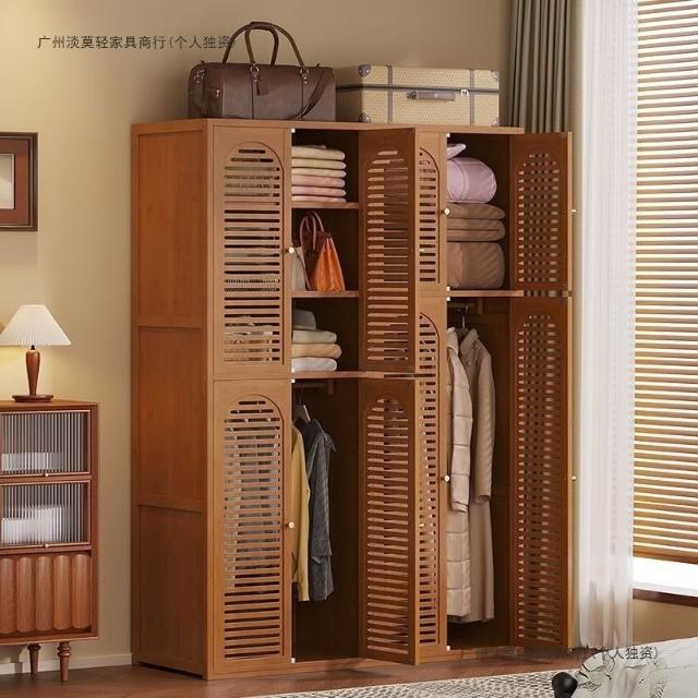 家用臥室小戶型靠墻大衣櫃 百葉門雙開門衣櫥 掛衣結實耐用楠竹衣櫃 房間衣物收納櫃