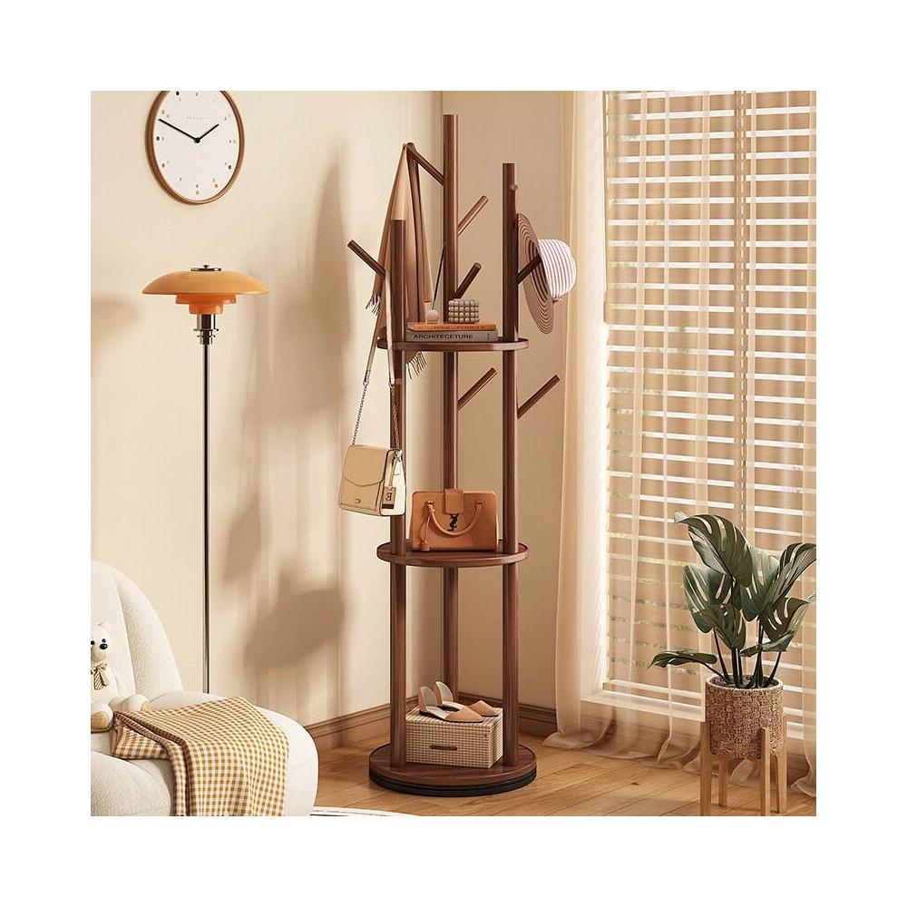 實木旋轉衣帽架 落地立式掛衣架 臥室家用客廳輕奢置物架