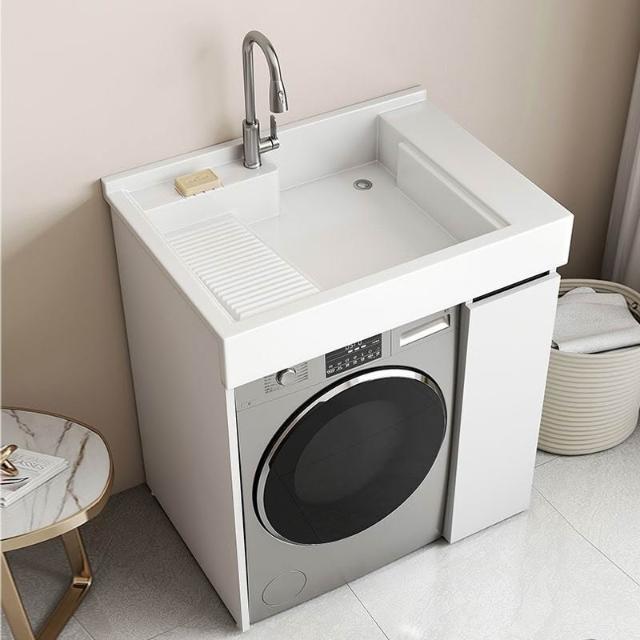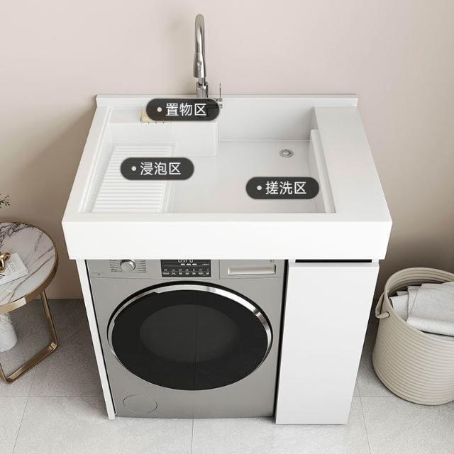 小戶型陽臺洗衣櫃一體機上臺盆滾筒洗衣機櫃帶搓板衛生間浴室櫃