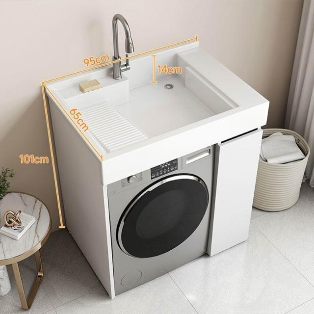 小戶型陽臺洗衣櫃一體機上臺盆滾筒洗衣機櫃帶搓板衛生間浴室櫃
