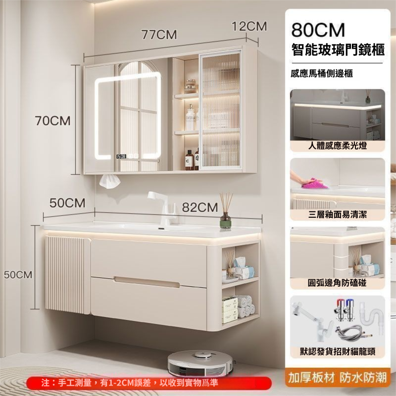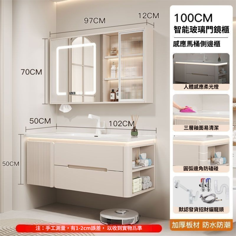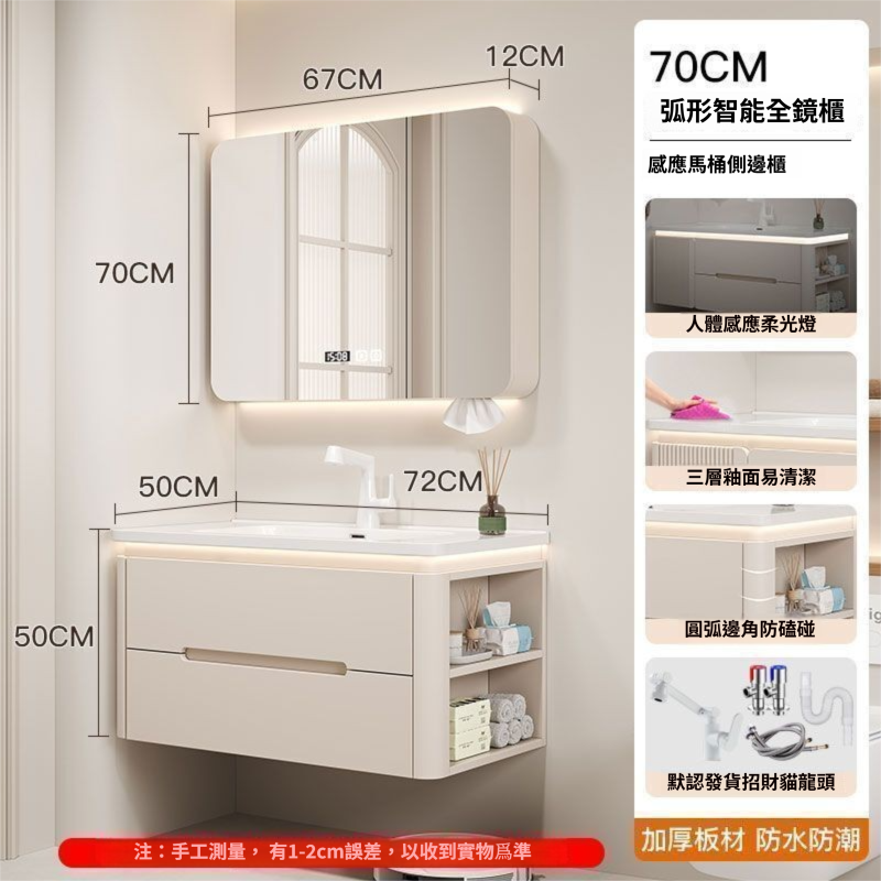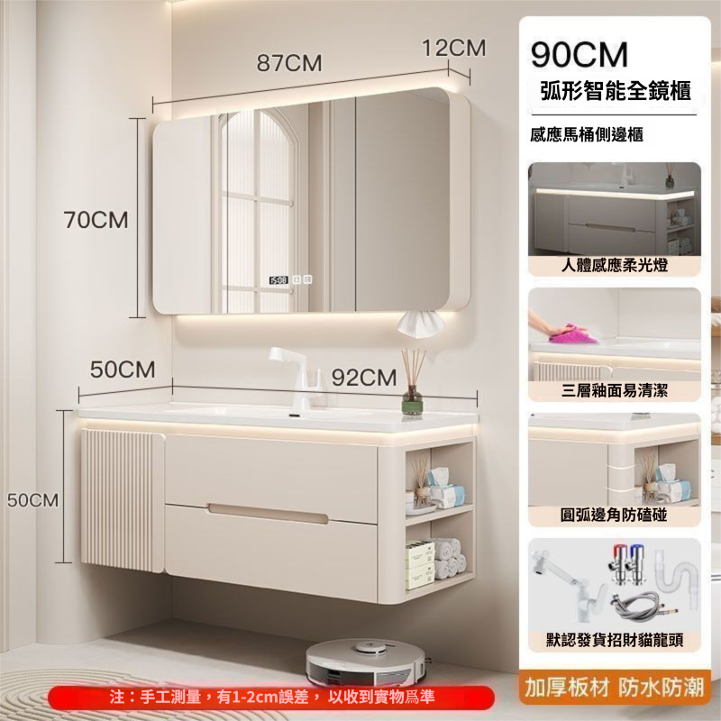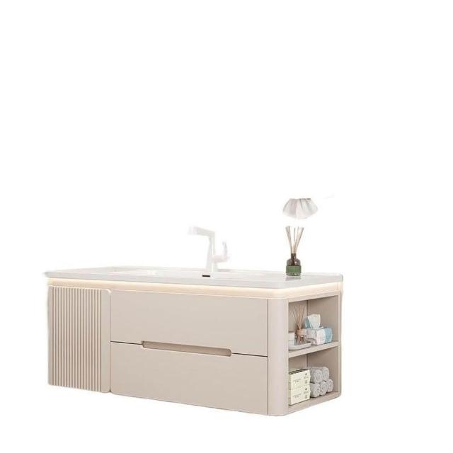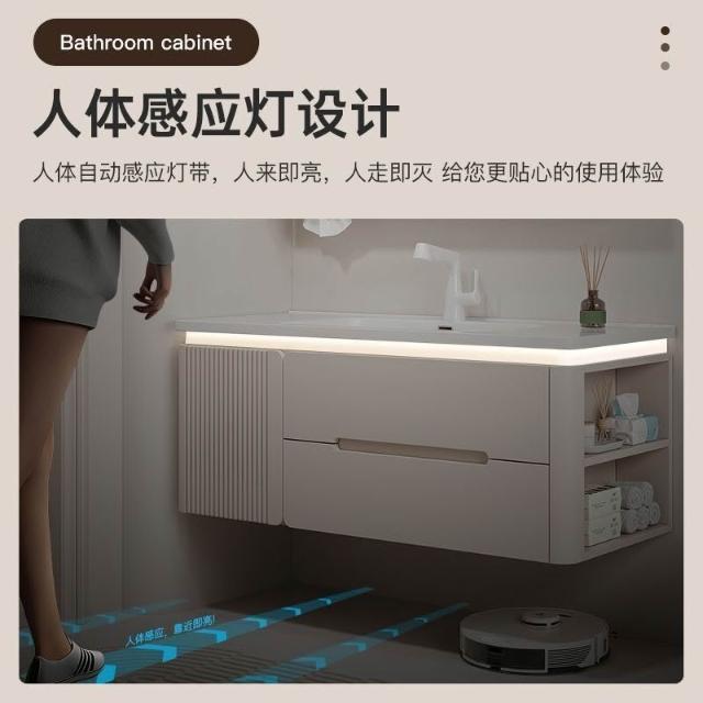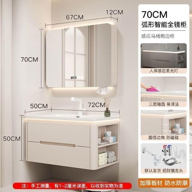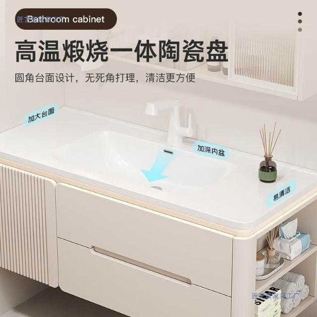 烤漆圓柱浴室櫃組合一體陶瓷盆防霧側櫃帶鏡燈設計簡約現代灰色