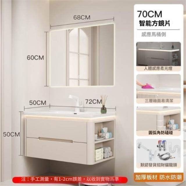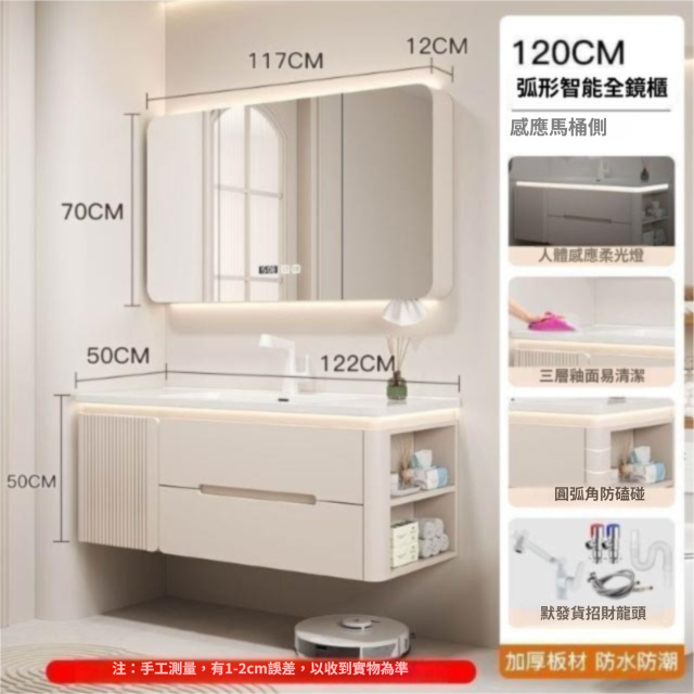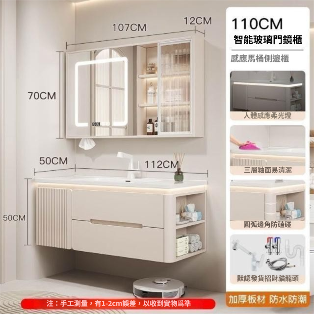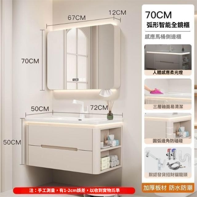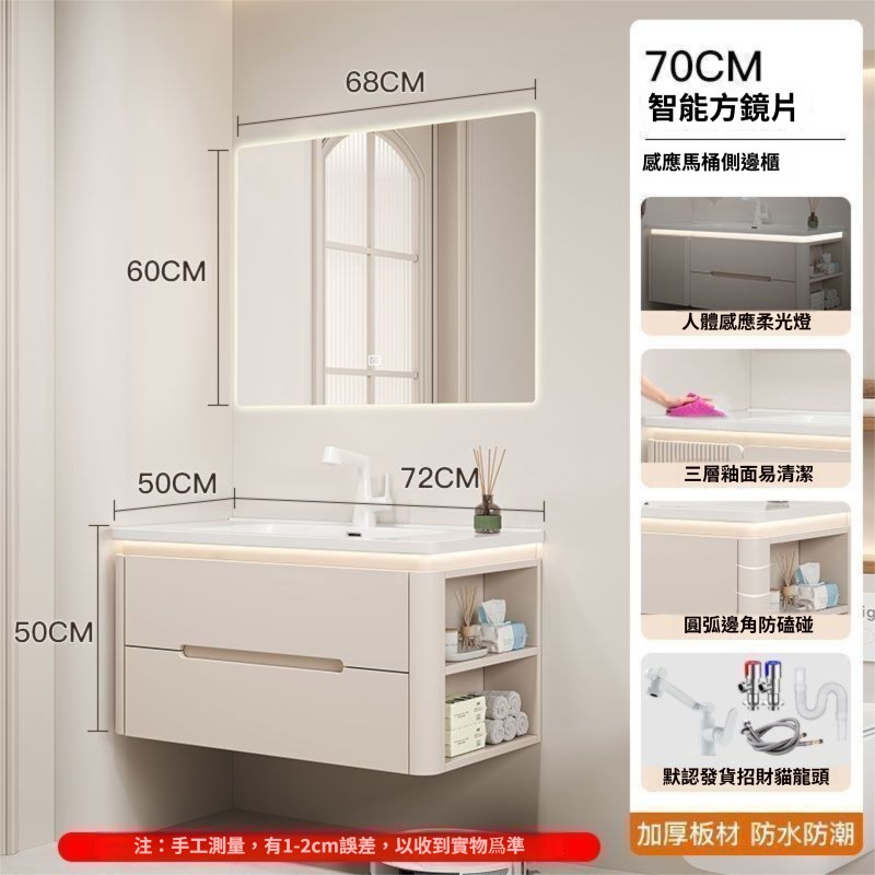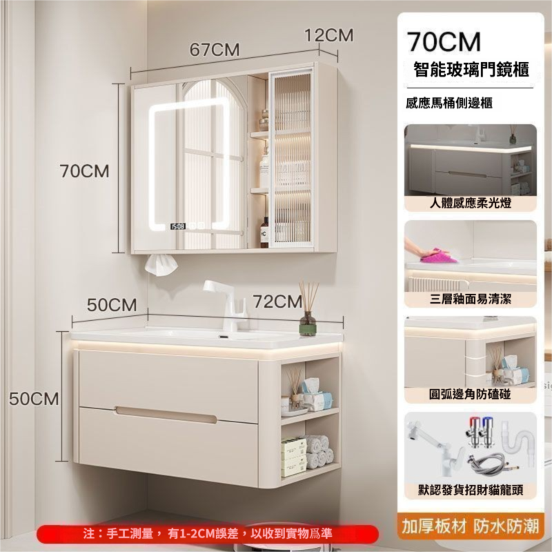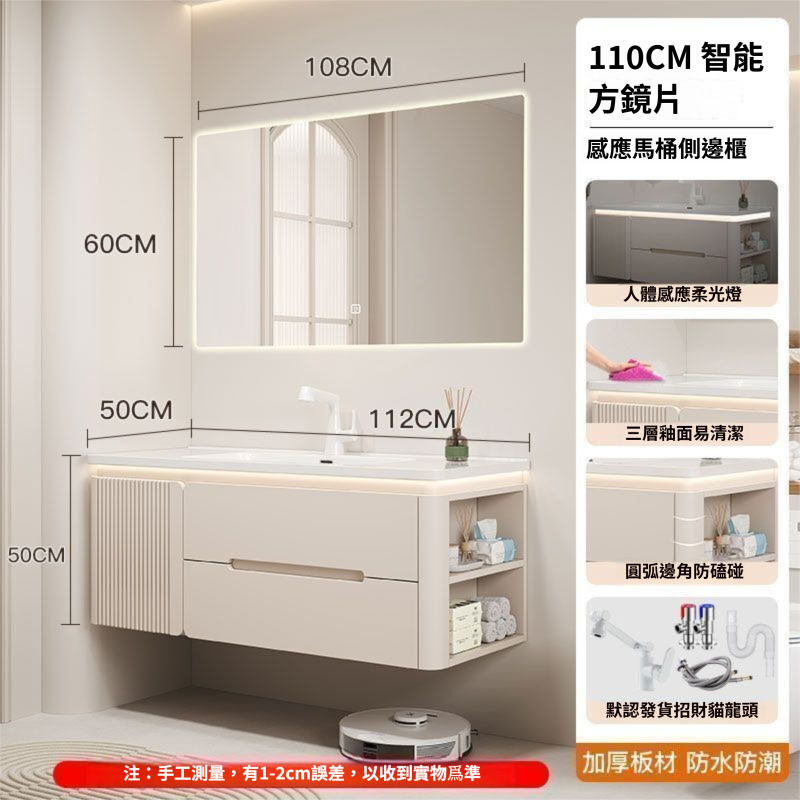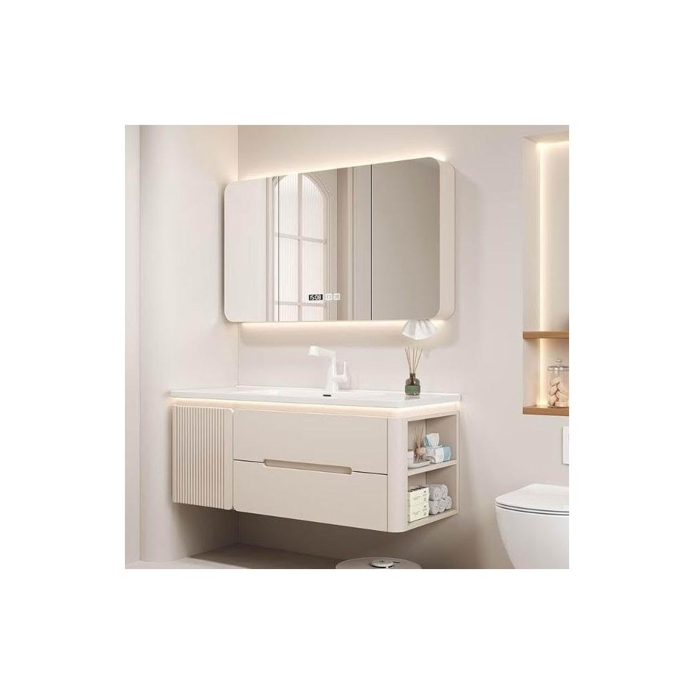 烤漆圓柱浴室櫃組合一體陶瓷盆防霧側櫃帶鏡燈設計簡約現代灰色