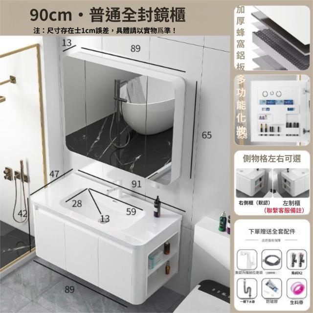 奶油風蜂窩鋁浴室櫃帶側邊櫃收納衛生間圓弧一體陶瓷洗漱洗臉盆櫃