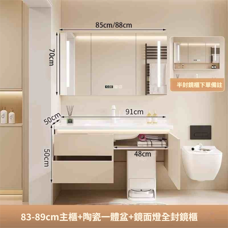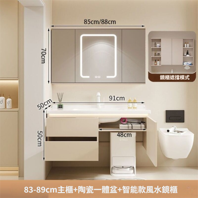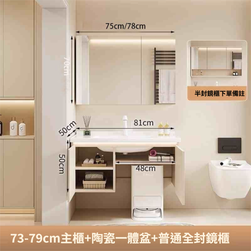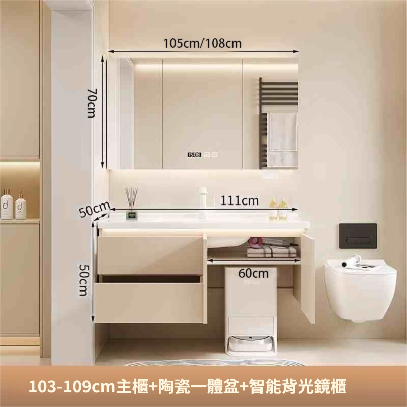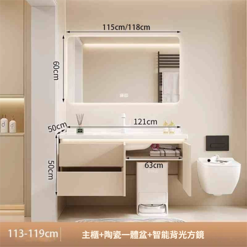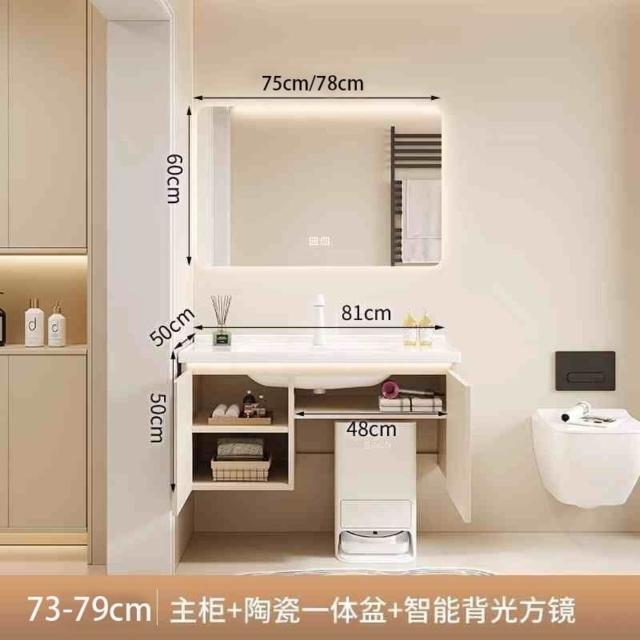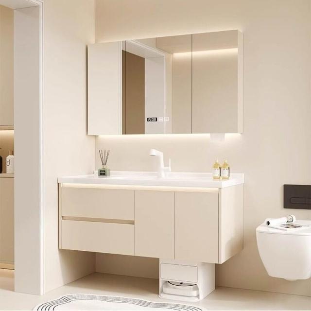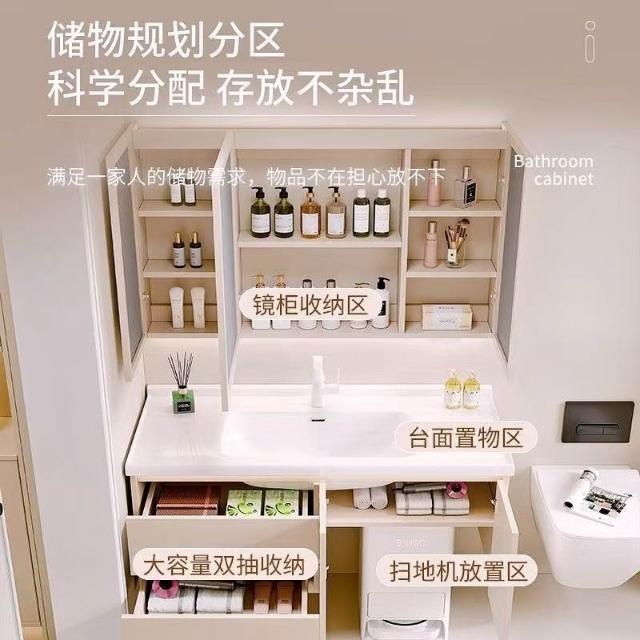 掃地機器人基站浴室櫃組合收納洗臉盆衛生間陶瓷洗手一體盆奶油白