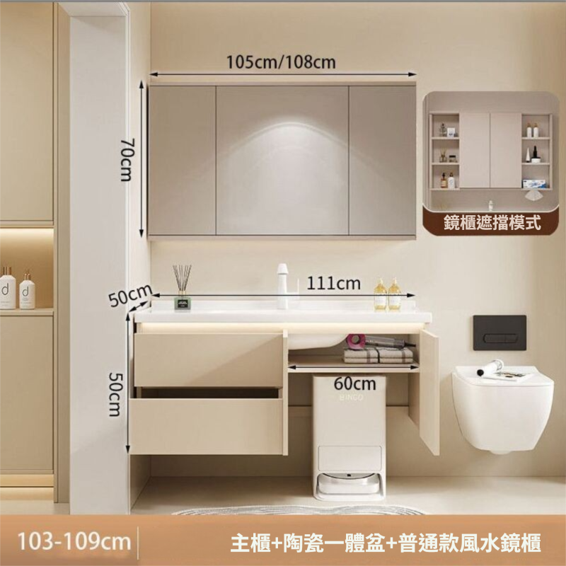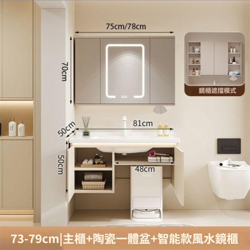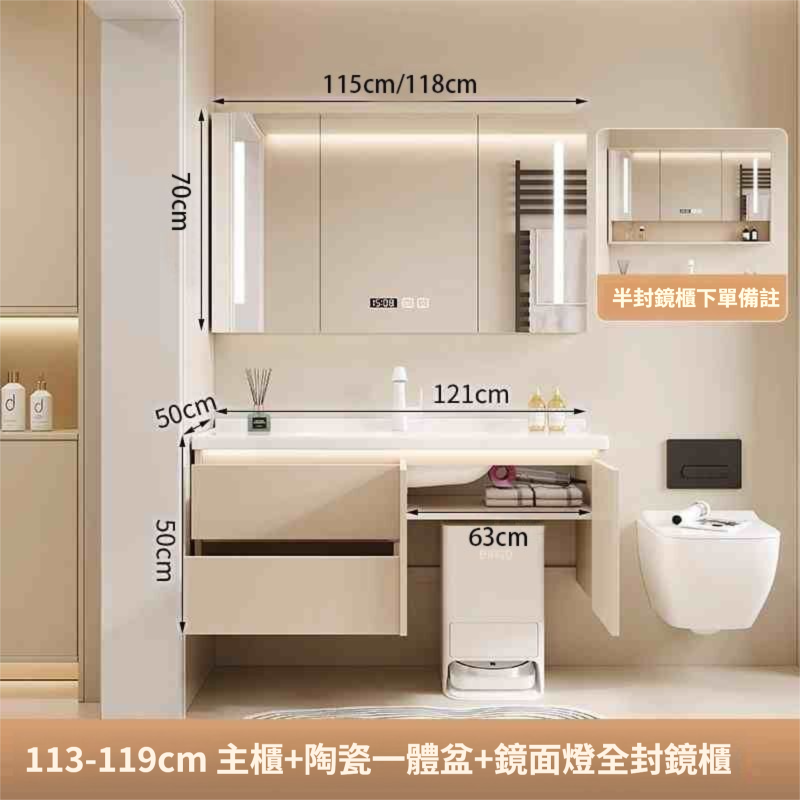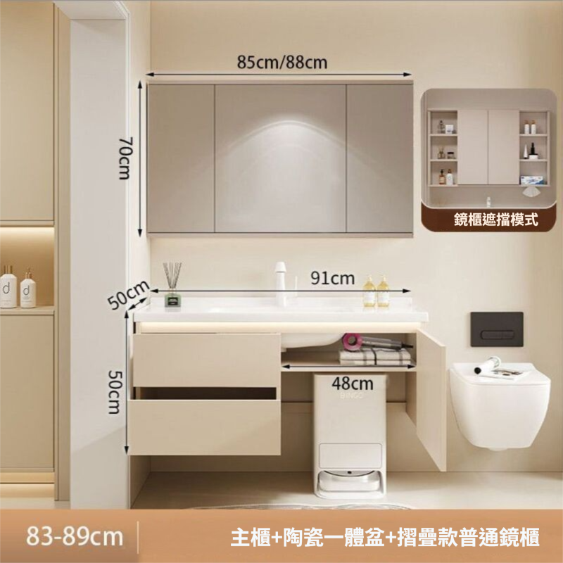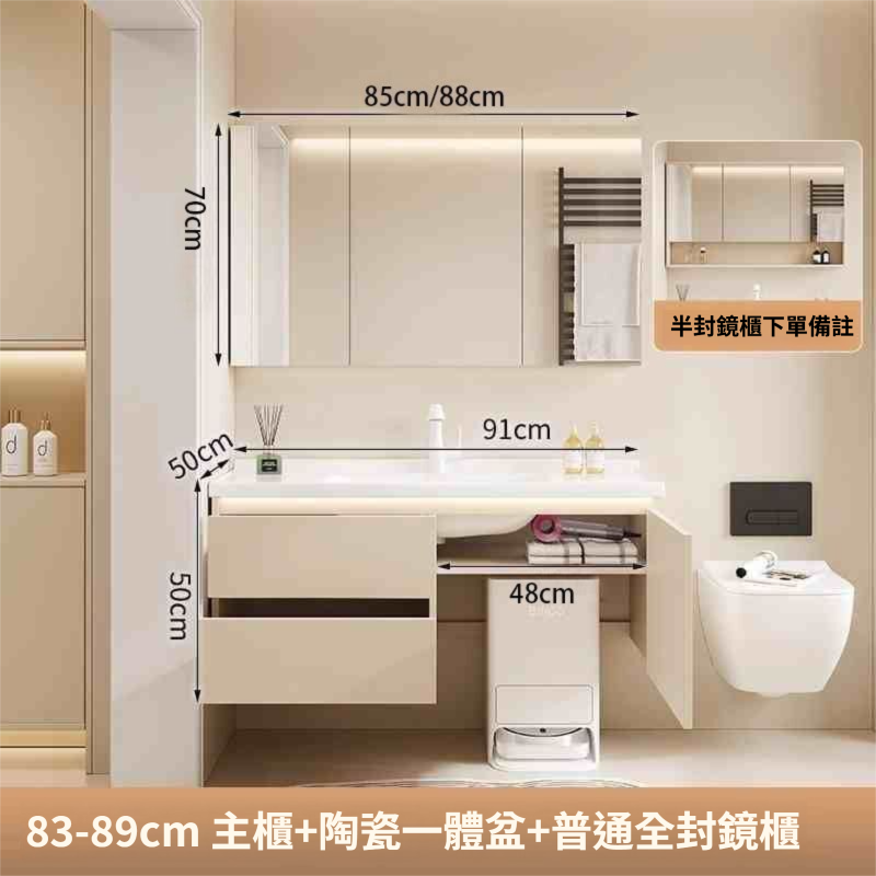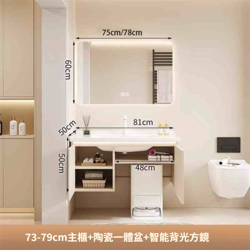 掃地機器人基站浴室櫃組合收納洗臉盆衛生間陶瓷洗手一體盆奶油白