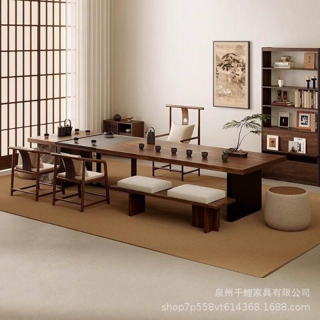 新中式茶桌宋代美學黑胡桃木喝茶桌椅組合客廳辦公室大板茶臺一體
