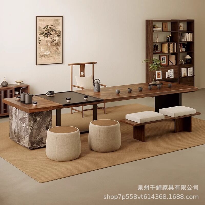 新中式茶桌宋代美學黑胡桃木喝茶桌椅組合客廳辦公室大板茶臺一體