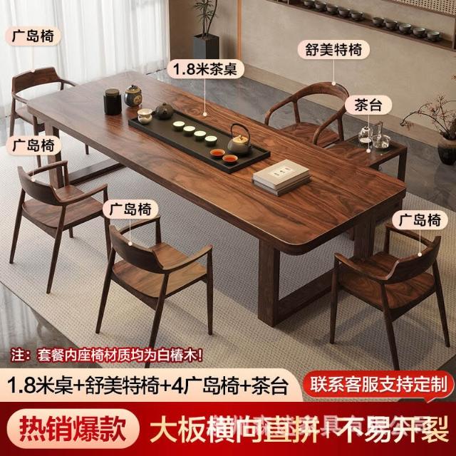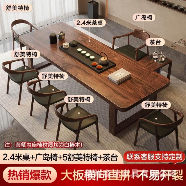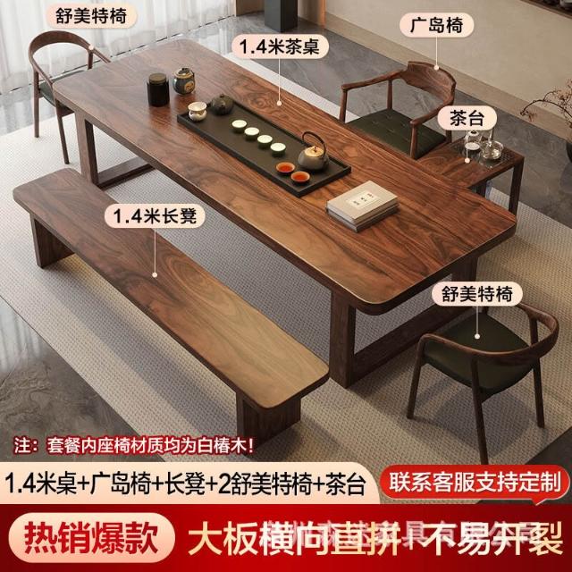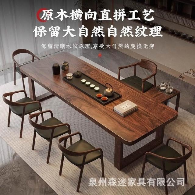 南美胡桃木全實木茶桌椅組合新中式辦公室泡桌喝茶一體原木茶臺