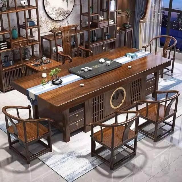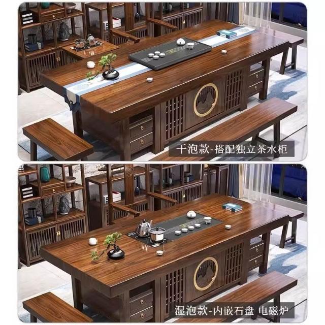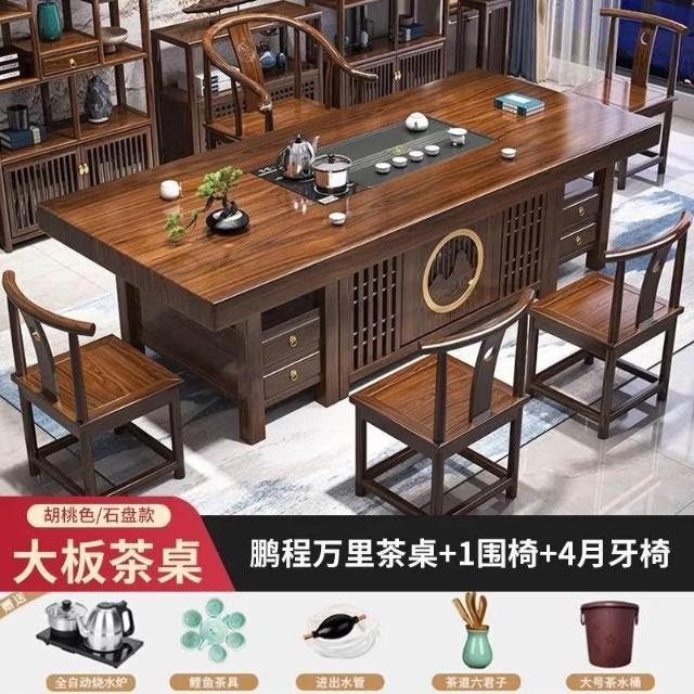 實木大板茶桌桌椅組合家用功夫茶幾辦公室中式一體一整套泡茶