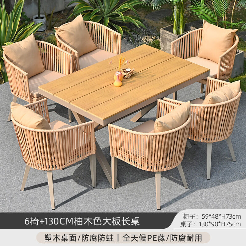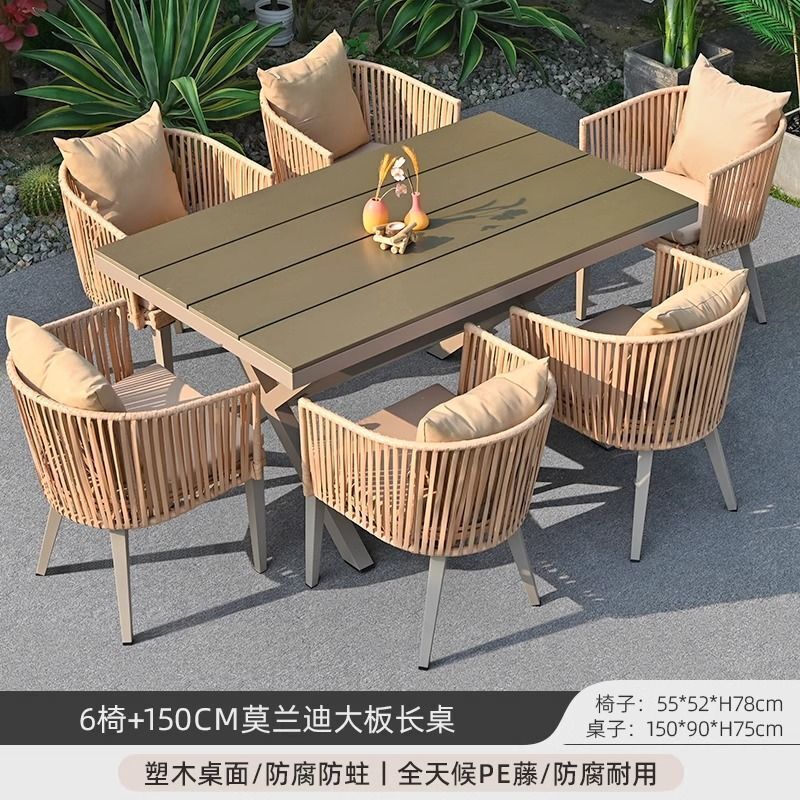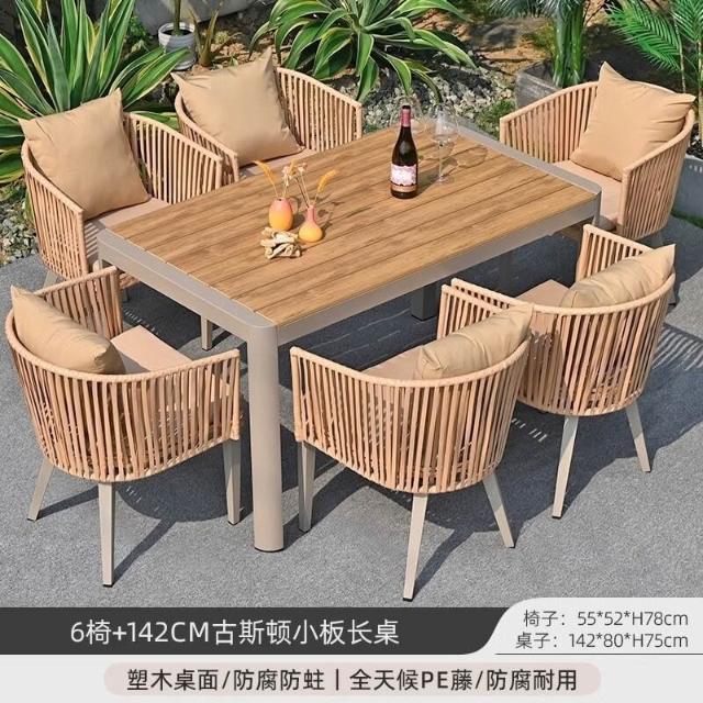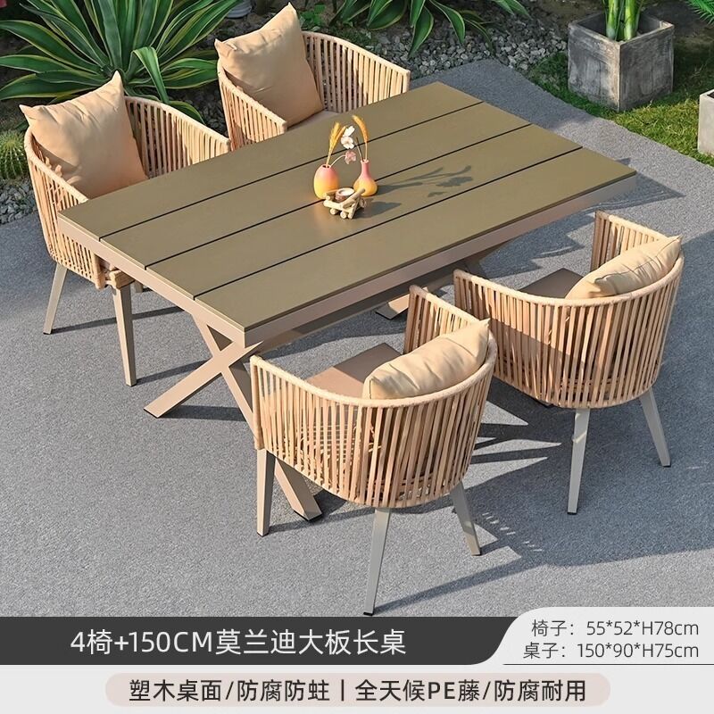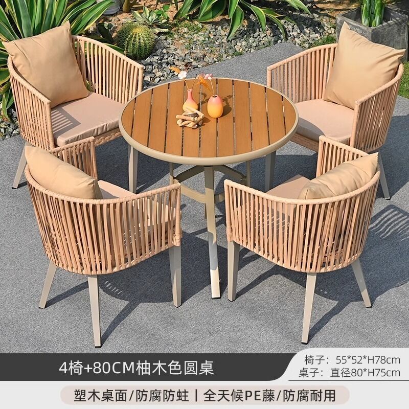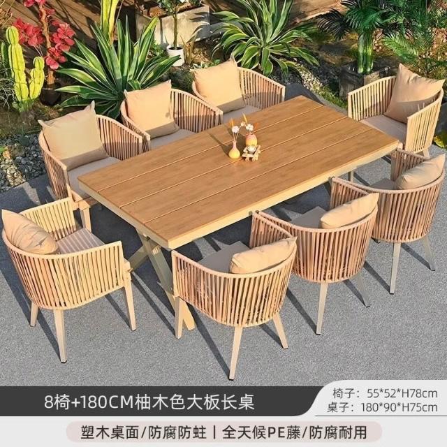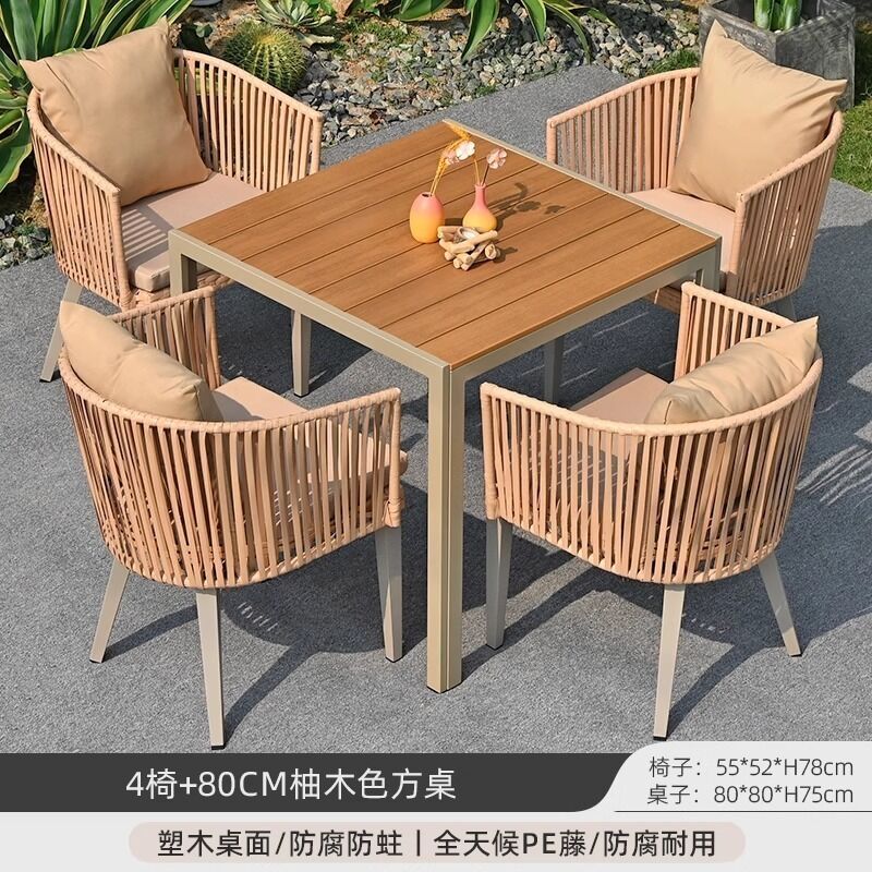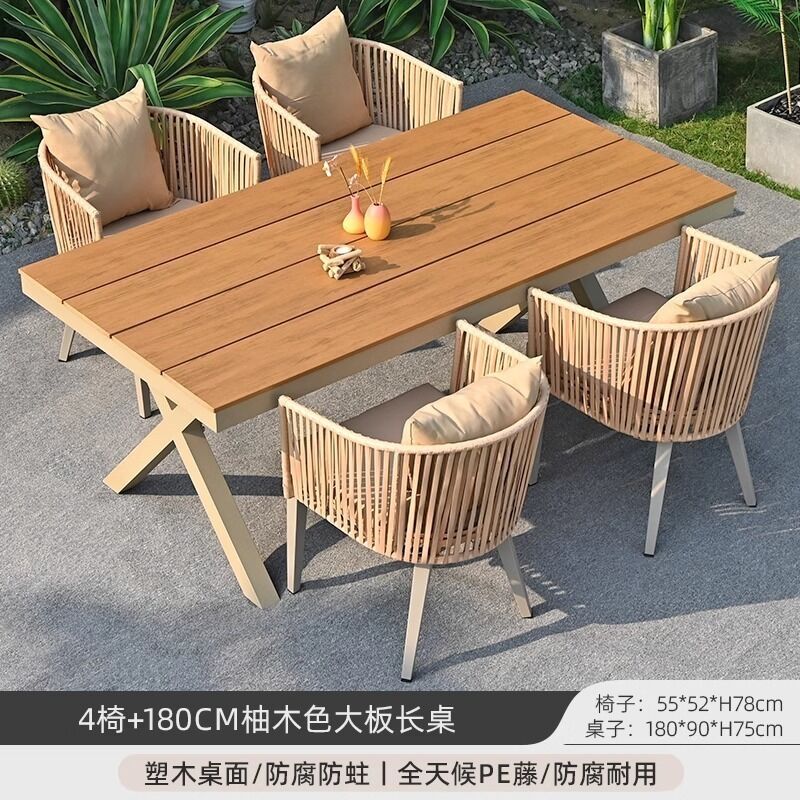陽臺院子花園藤編椅直銷戶外庭院桌椅室外休閑塑木餐桌椅組合露天