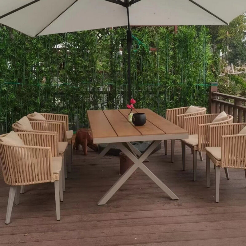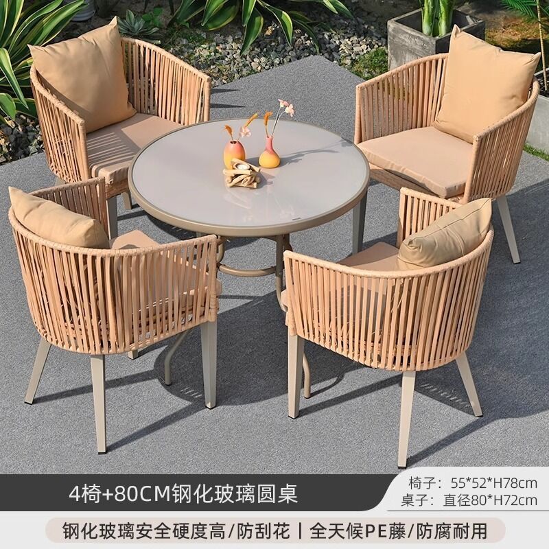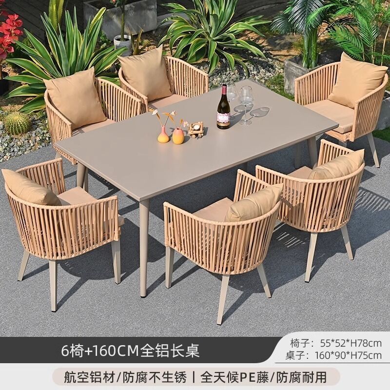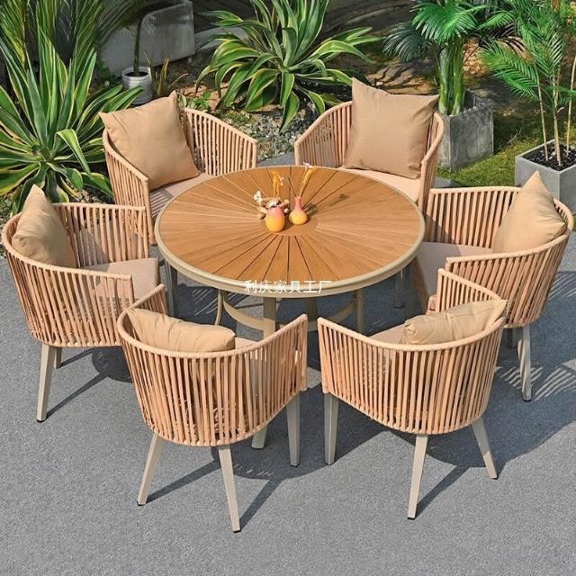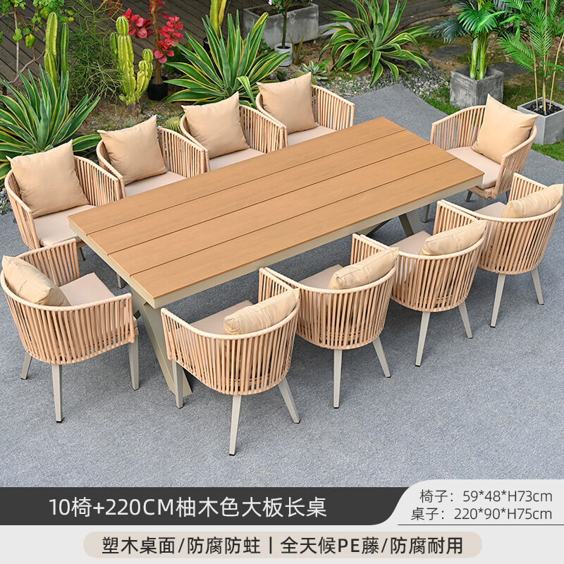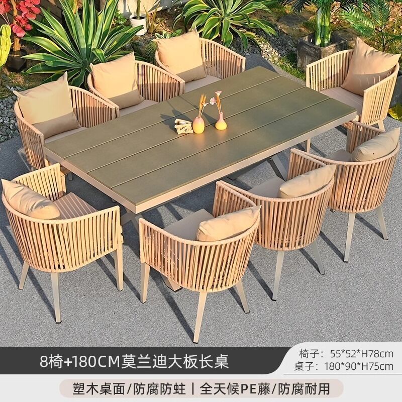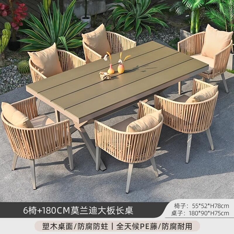 陽臺院子花園藤編椅直銷戶外庭院桌椅室外休閑塑木餐桌椅組合露天