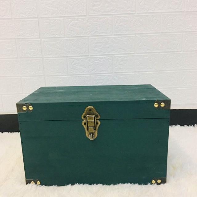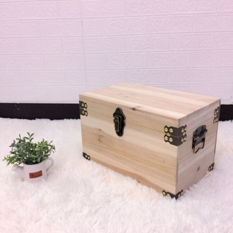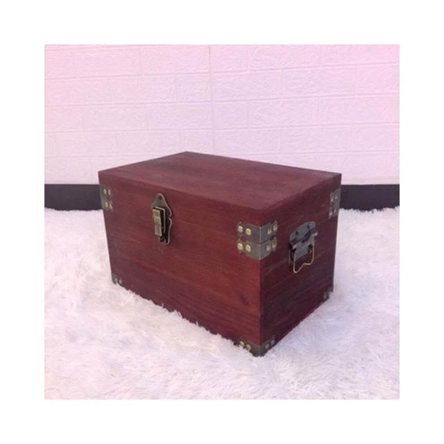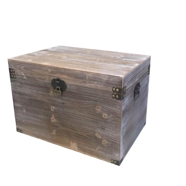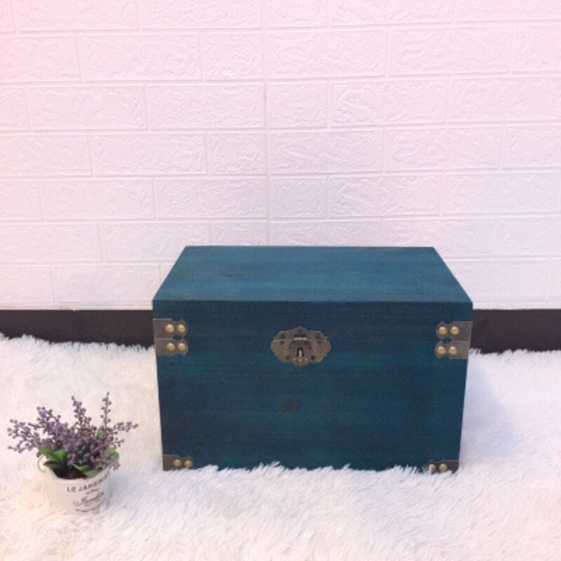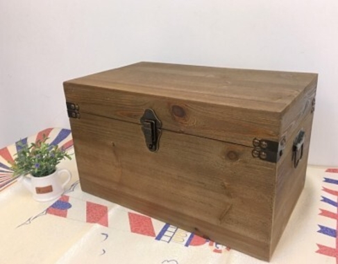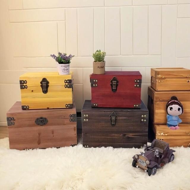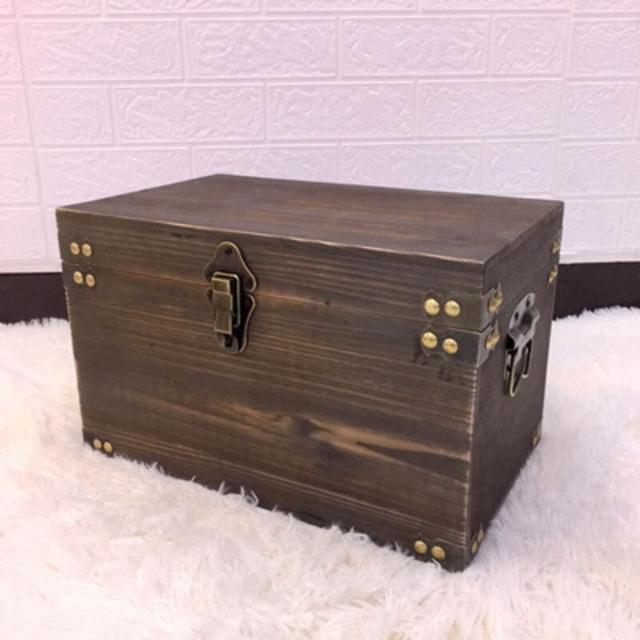 復古木箱 帶蓋儲物箱 收納箱 帶鎖小木盒 做舊服裝店裝飾道具箱子
