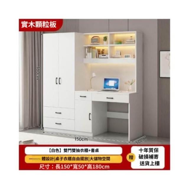 可代客組裝 實木衣櫃連書桌一體 小戶型臥室家用衣櫃 兒童房帶電腦桌子帶書櫃組合