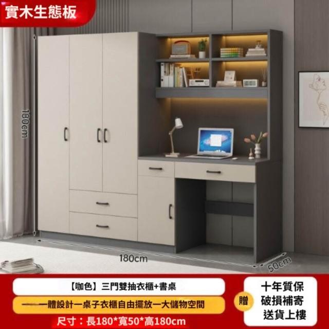 可代客組裝 實木衣櫃連書桌一體 小戶型臥室家用衣櫃 兒童房帶電腦桌子帶書櫃組合