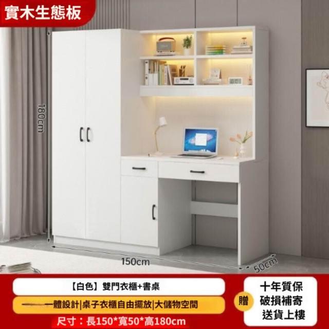 可代客組裝 實木衣櫃連書桌一體 小戶型臥室家用衣櫃 兒童房帶電腦桌子帶書櫃組合