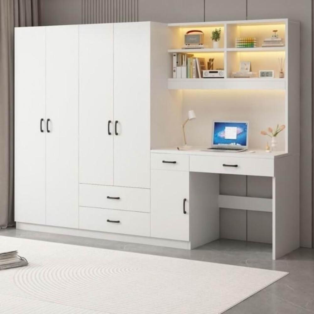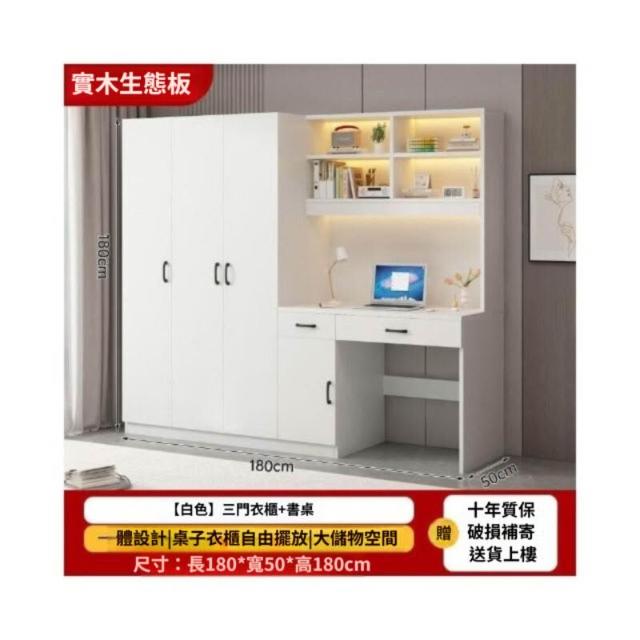 可代客組裝 實木衣櫃連書桌一體 小戶型臥室家用衣櫃 兒童房帶電腦桌子帶書櫃組合
