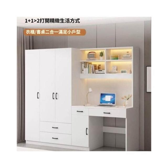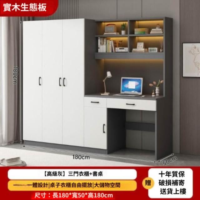 可代客組裝 實木衣櫃連書桌一體 小戶型臥室家用衣櫃 兒童房帶電腦桌子帶書櫃組合