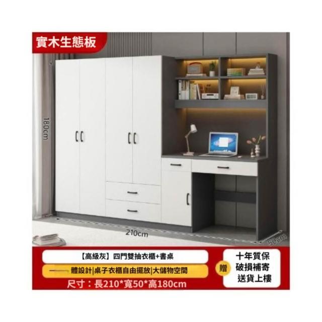 可代客組裝 實木衣櫃連書桌一體 小戶型臥室家用衣櫃 兒童房帶電腦桌子帶書櫃組合