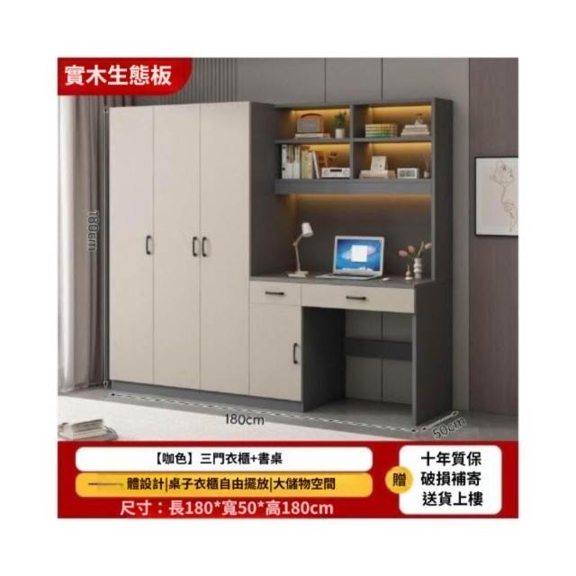 可代客組裝 實木衣櫃連書桌一體 小戶型臥室家用衣櫃 兒童房帶電腦桌子帶書櫃組合