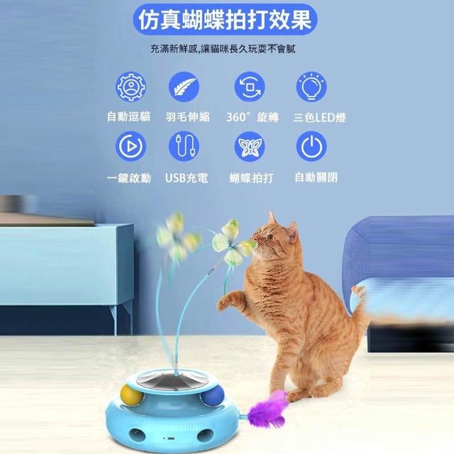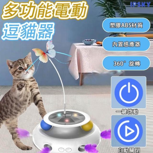 IPSKY多功能電動逗貓器(自動逗貓棒 貓玩具貓咪自嗨玩具 智能逗貓器 寵物玩具 羽毛轉盤)