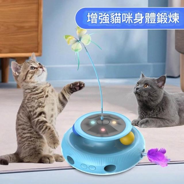 IPSKY多功能電動逗貓器(自動逗貓棒 貓玩具貓咪自嗨玩具 智能逗貓器 寵物玩具 羽毛轉盤)