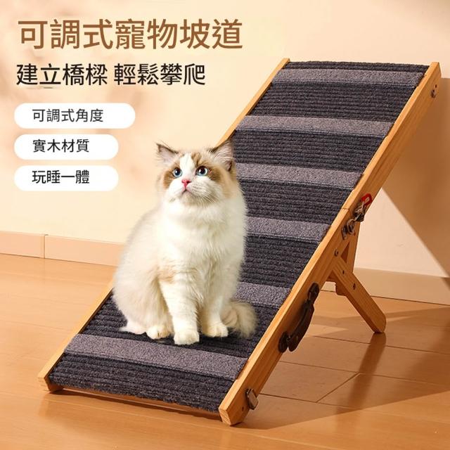 IPSKY可調節寵物坡道(寵物樓梯 狗狗斜坡樓梯 寵物爬梯 寵物階梯 狗樓梯 5檔調節 可折疊易收納不佔空間)