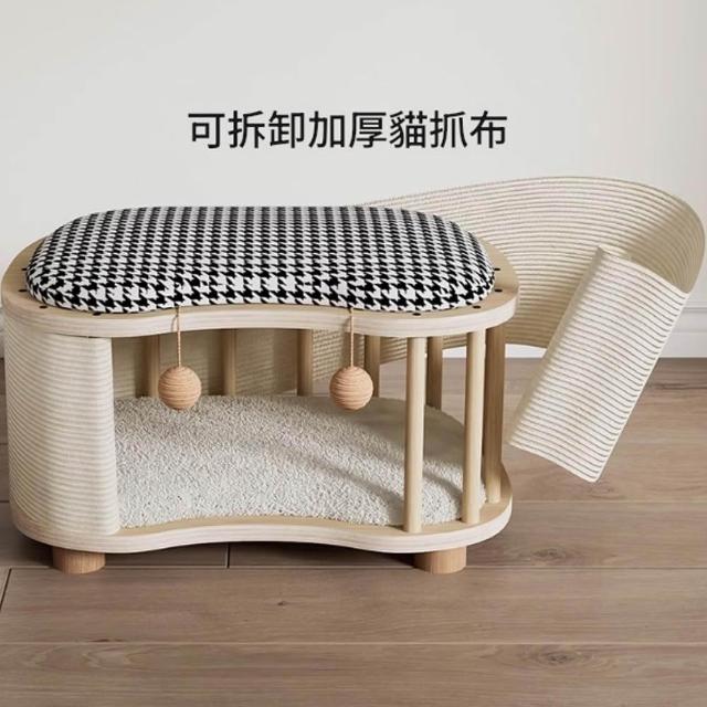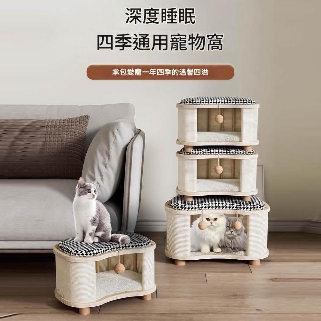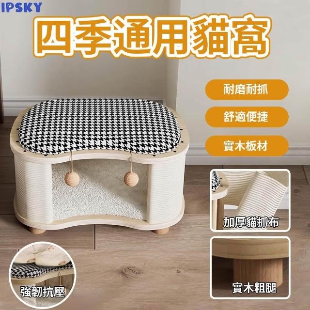 IPSKY【現貨】封閉式貓窩(實木貓窩 人貓共用凳子 貓窩凳子 寵物帳篷 貓窩凳 保暖貓窩 四季通用寵物窩)
