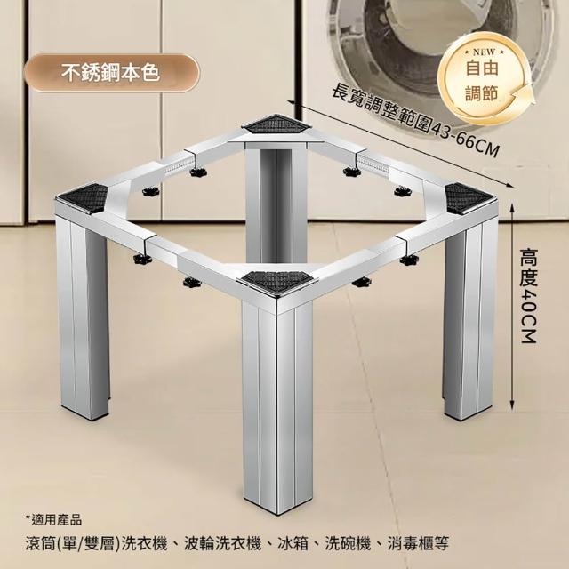 RTAKO防水防震洗衣機底座 加厚不銹鋼腳架 尺寸自由調整 滾筒/直立通用 伸縮底座 家電置物架 高度40公分