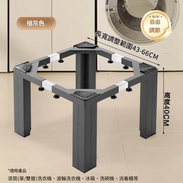 RTAKO防水防震洗衣機底座 加厚不銹鋼腳架 尺寸自由調整 滾筒/直立通用 伸縮底座 家電置物架 高度40公分