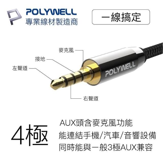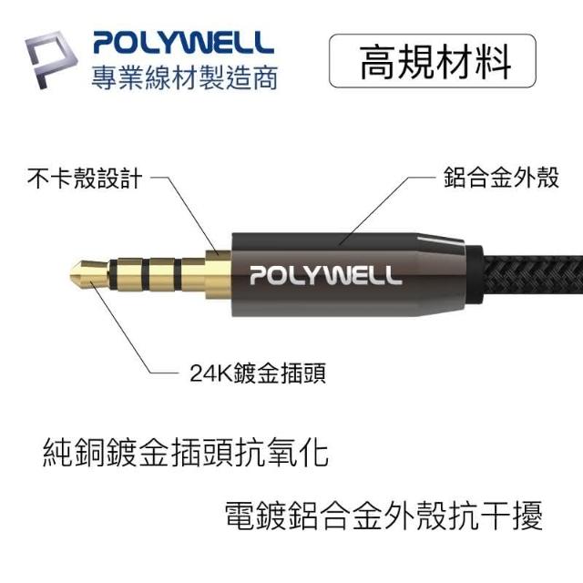 🏆冠軍嚴選🏆高階音線 立體聲 喇叭線OLYWELL 3.5mm 麥克風音源線 1米 公對公 4極 音頻線 寶利威爾 一年保固 音源線