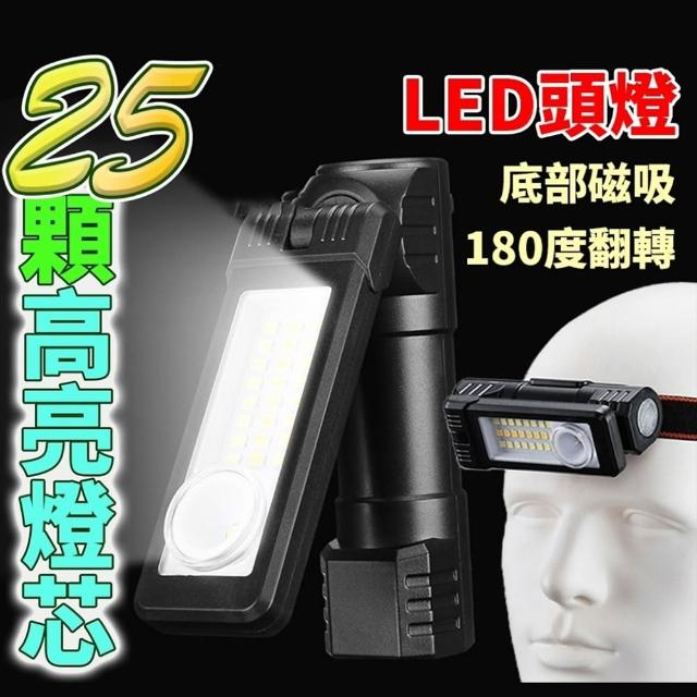 🏆冠軍嚴選🏆25顆LED工作頭燈 磁吸頭燈 多功能頭燈 充電頭燈工作燈露營燈爆閃燈 維修燈 戶外燈 燈 燈具應急燈手電筒